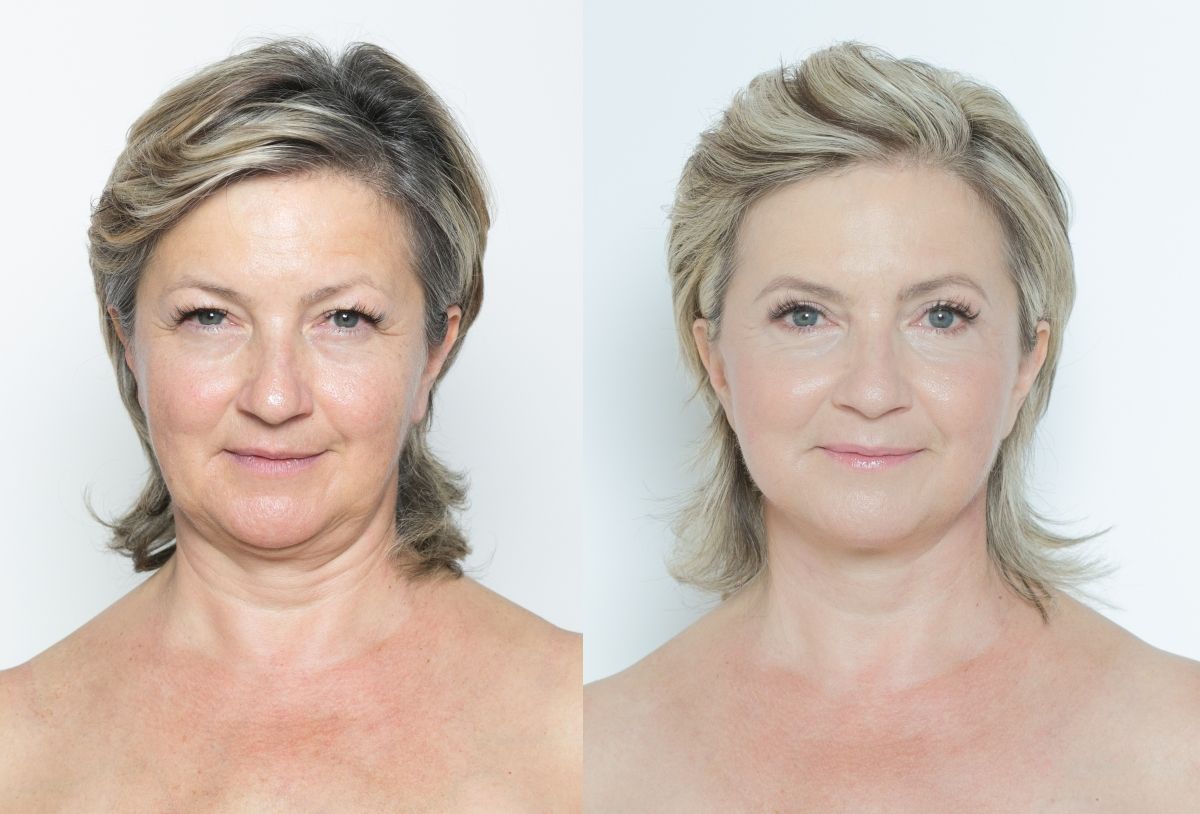 Mrs. Jitka underwent a plastic surgery of face and neck augmentation combined with upper and lower eyelid surgery. For easier treatment and healing, I recommended that the client split the procedures into two procedures. First, I operated on the upper and lower eyelids, using a scalpel on the upper eyelids and a laser on the lower eyelids - a method called transconjunctival blepharoplasty. This is a very popular and spectacular lower eyelid surgery that is performed with a laser scalpel without skin incision, suturing and subsequent scarring. In addition, the loosened skin of the lower eyelid is treated with the laser and thus the eye area is significantly rejuvenated. After the healing of the eyelids, approximately two weeks later, Mrs. Jitka also underwent a facelift and necklift, i.e. total rejuvenation of the face and neck. This surgery will accentuate the features of the lower half of the face and tighten the skin to give the face a healthier and younger appearance. I have recommended that the client also undergo wrinkle smoothing in the mid-face with botulinum toxin injections and hyaluronic acid fillers at our aesthetic dermatology practice in the future. Then the rejuvenation effect will be absolutely perfect.