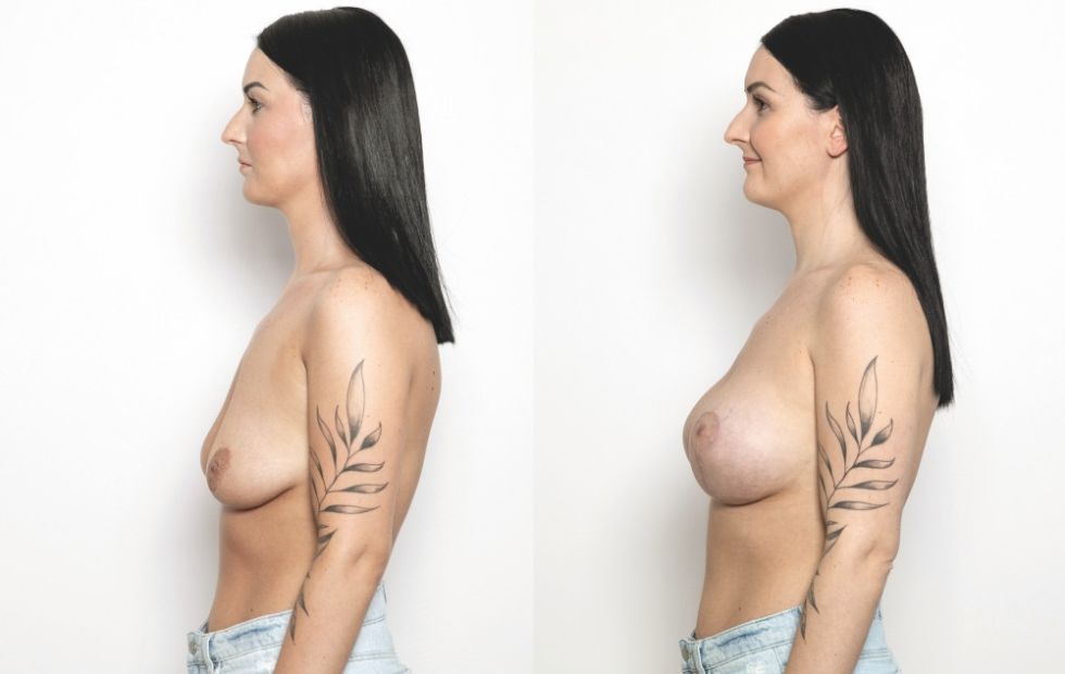 Mrs. Klara turned to me again with a request for a solution to her empty and sagging breasts, which bothered her after two pregnancies and breastfeeding. I recommended breast augmentation with silicone implants combined with modeling. Together, I settled on round implants from a German brand in a high profile and 315 ml size, which was the optimal volume for the client after trying a sizer during surgery. The surgery and subsequent recovery was uneventful and we are both very happy with the final result. I also recommended laser treatment at our aesthetic dermatology clinic for faster fading of the scars.